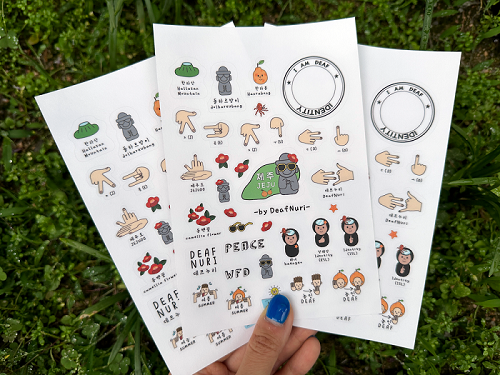 데프누리에서보내온 기쁜 소식을 공유드리겠습니다. ![]() ▲ 데프누리에서 제작한 스티커 안녕하세요. 저희 반가운 소식을 공유하려고 해요! 지난 5월 중순쯤에 데프누리에서 농인의 눈으로 디자인한 굿즈는 펀딩을 통해 처음으로 선보였어요. 펀딩은 한국홈페이지 - 텀블벅에서 한 달 반 동안 진행되었고, 126%나 달성했어요! 반응이 너무 뜨거웠어요!! 굿즈는 다가오는 7월 11일에 제주도에서 열리는 WFD대회 때, 부스를 통해 한정수량 판매할 예정이에요! 다음에 좋은 소식을 가져올게요!