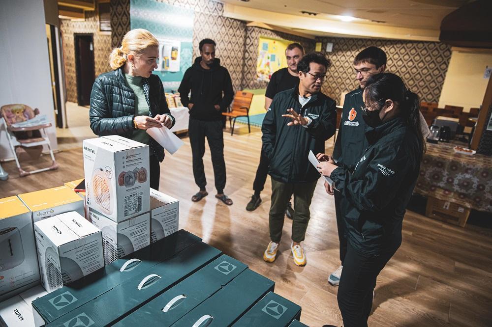 예전에 영화관이었던 파트리아 루코일 임시 피난소에는 100명의 우크라이나 난민이 지내고 있습니다. 그 중에 27명이 어린이입니다. 숙박은 여성과 아이들은 따로 분리해 마련했습니다. 피난소 숙소 안에는 난방이 되는 방과 그렇지 않은 방이 있습니다. 쿠키와 우유가 늘 구비되어있고, 피난소 출입구에 위치한 오픈 스페이스를 식당으로 사용하고 있습니다. 피난소는 코로나 감염 예방을 고려해 격리 장소도 따로 준비했고 오픈 스페이스도 테이블 가림막이 설치되어있습니다.