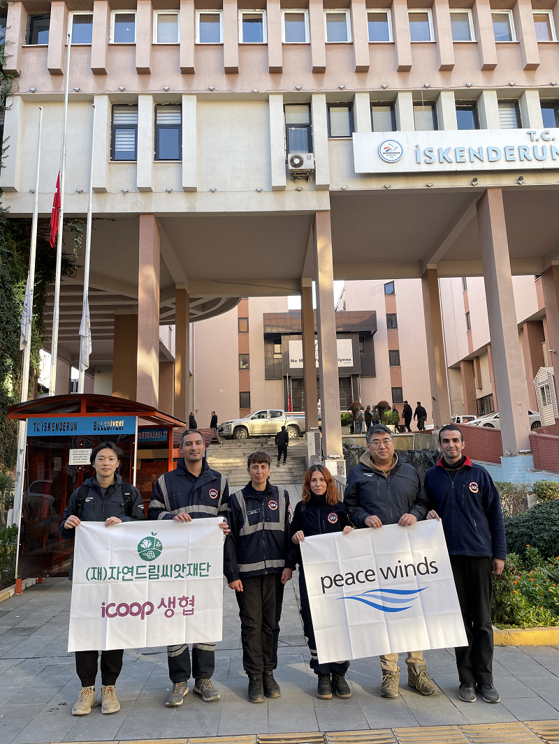 재단법인 피스윈즈코리아는 튀르키예 지진 발생 직후, 긴급구호 팀이 현장에 출동하여 구호 활동을 이어 오고 있습니다. 2월 21일 새벽, 한국에서 2차로 인력들이 현장에 파견을 갔습니다. 21일 오후, 무사히 튀르키예 지진 현장에 도착하여 튀르키예 남부에 위치한 '아다나'라는 지역에 베이스캠프를 꾸렸습니다. 현재 모든 비영리단체들이 튀르키예 정부(AFAD) 통제 하에 긴급구호를 진행해야하는 상황입니다. 몰도바 현장과는 다르게 즉각적으로 움직일 수 없는 상황입니다. 이렇듯 현장에서 구호 활동을 추진하려면 현지 단체와의 협력이 반드시 필요합니다. 피스윈즈는 'GEA'라는 단체와 업무 협약을 체결했습니다. GEA는 '수색'과 '구조'를 전문으로 하는 단체로서 1994년에 설립된 자원봉사단체입니다. 자원봉사단체지만 GEA는 해외 재난 발생 시 각국 구조대의 탐색구조 활동을 조정ㆍ통제하는 유엔(UN) 산하기구인 인사락(INSARAG) 멤버입니다. 누구보다 뛰어난 전문성을 보유하고 있습니다. 6,580명의 자원봉사자로 구성되어 있고, 현장에 출동할 수 있는 훈련된 구호전문가 458명을 보유하고 있습니다. (해외 긴급구호 현장에 출동할 수 있는 인력은 112명입니다)