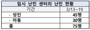 우크라이나 난민 긴급구호 주간 보고서 - 몰도바 내 파트리아 루코일 난민 센터 - ○ 몰도바 내 파트리아 루코일 센터 운영 현황 현재 3월 13일~19일까지 몰도바 내 파트리아 루코일 센터에 수용된 난민은 75명입니다. - 연금 수급 연령 이하 난민의 70%는 현재 구직 활동 중이거나 일하는 중이며 유치원, 주유소, 식당에서 근무하거나 사회 보조원, 운전사로 일하는 중입니다. - 현재 몇몇 난민은 우크라이나 키로피브니츠키(Kropyvnytskyi)로 농사지으러 떠났으며 그곳은 전쟁 시작 후 딱 한 번 폭탄 공격을 받았을 정도로 상대적으로 안전한 곳입니다. 본인(블라디미르)도 3월 23일에 퇴근 후 키로피브니츠키로 갈 예정입니다.
