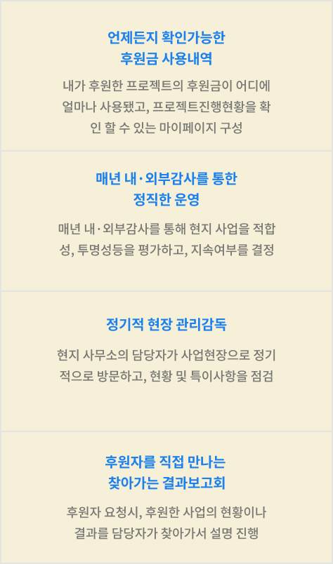 소중한 후원금을 필요한 곳에 빠르게 닿을 수 있도록